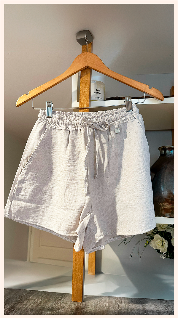El short de lino AMANDA, es un básico fresco y elegante ideal para esta temporada, se adapta a la playa y al uso urbano. Su corte es de tipo holgado, ¡super fresco!